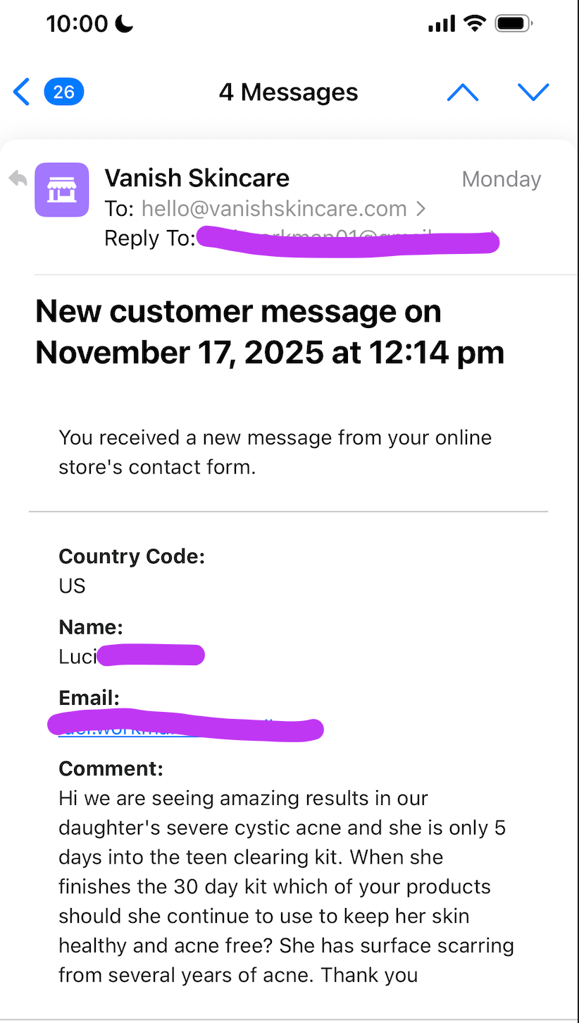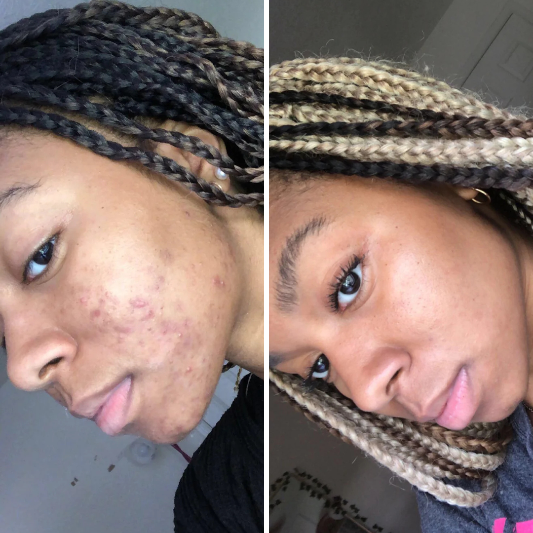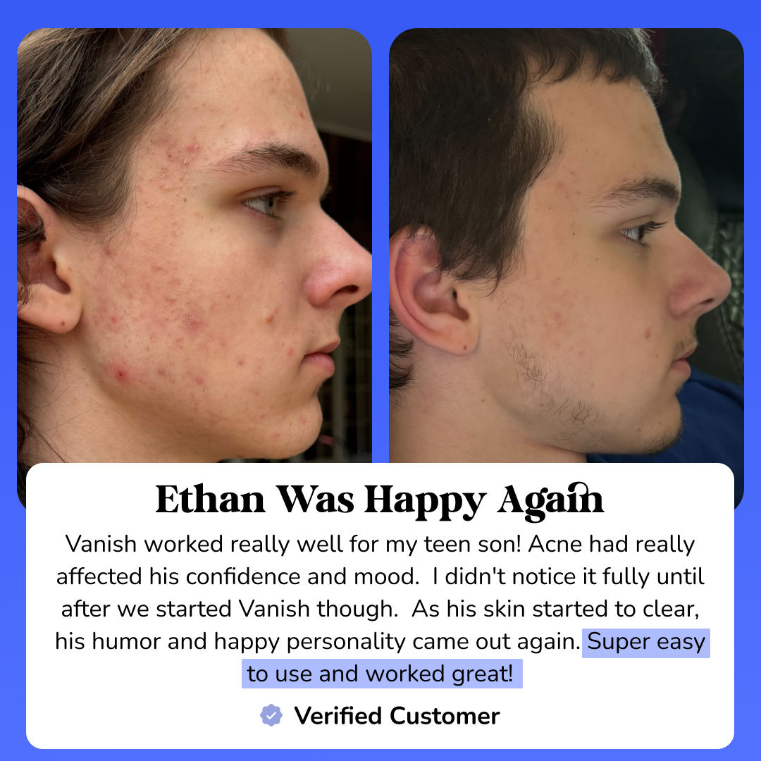 Most creams, gels, serums and spot treatments often sit on top of the skin due to the thick molecule size of these liquid products. Teens have smaller pores which means the treatment doesn't reach the true root cause of teen acne - deep within the skin. This takes longer for the acne to clear and causes teens to apply more of the product, thinking "more is better". This leads to harsh side effects like redness, peeling, purging and irritation.
