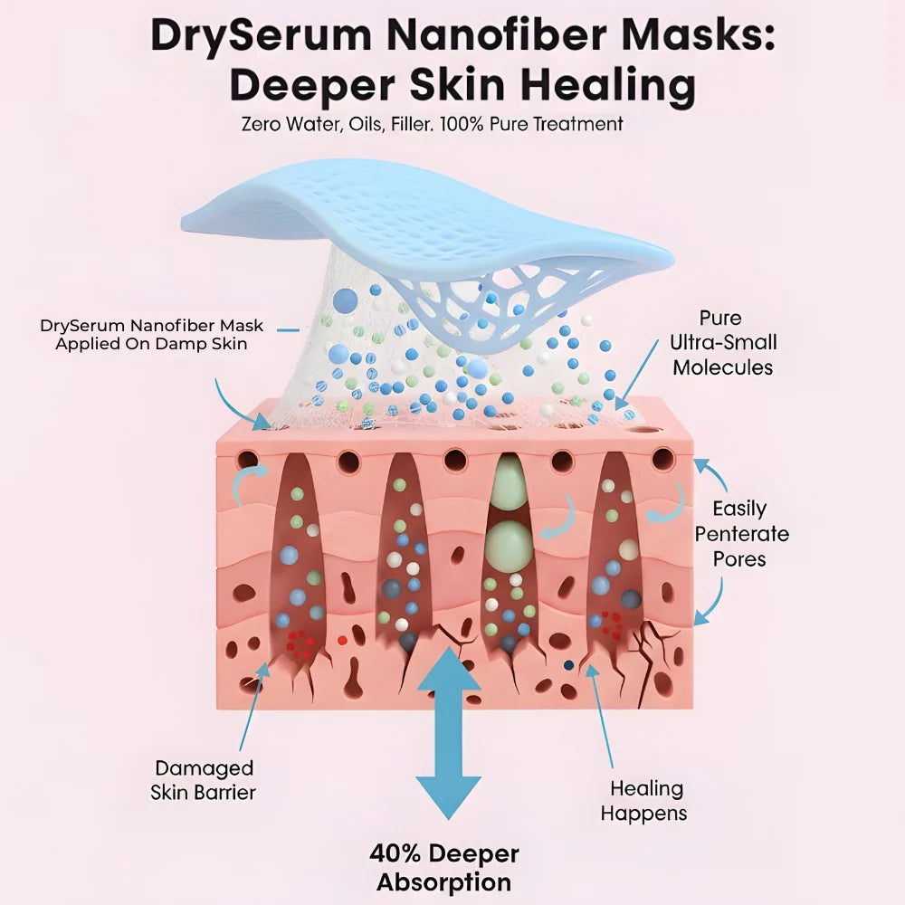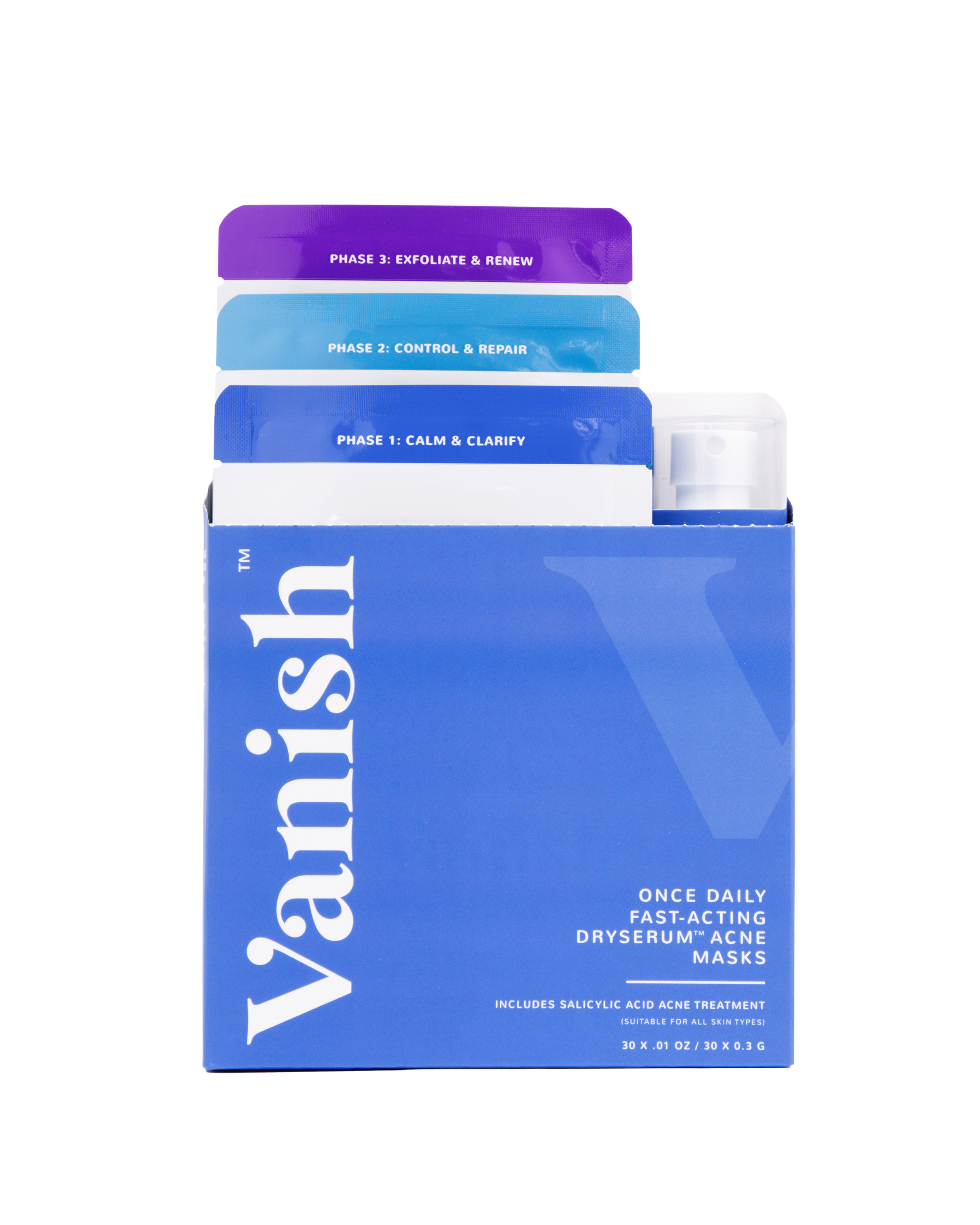 Vanish’s Patented-DrySerum™ Nanofiber contain 100% active ingredients that are encapulated into collagen Nanofibers, which are 1/1000th the size of a human hair! Each mask contains zero fillers, zero oils or water and zero perservatives that are thiin enough to penetrate the smaller pores of teen skin.